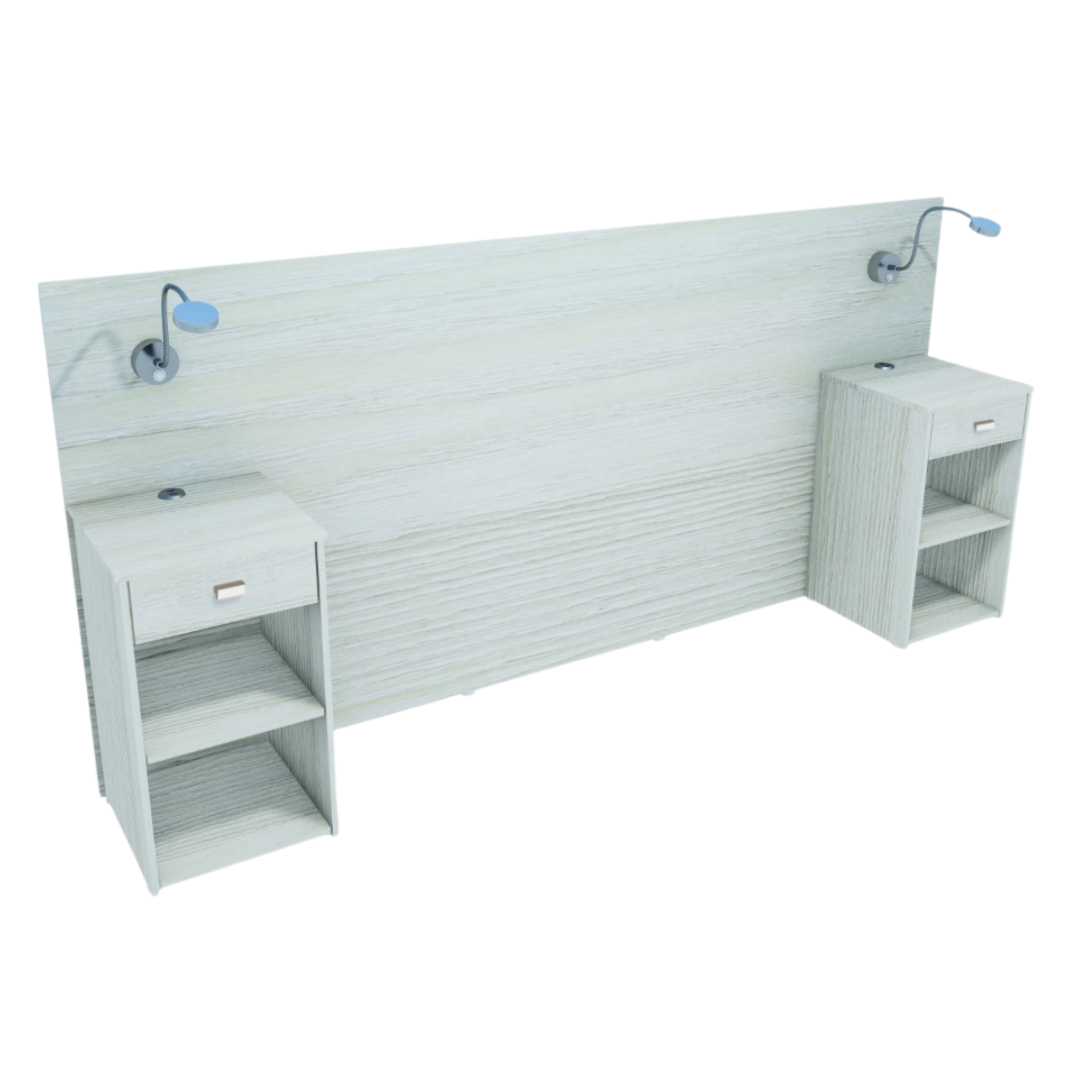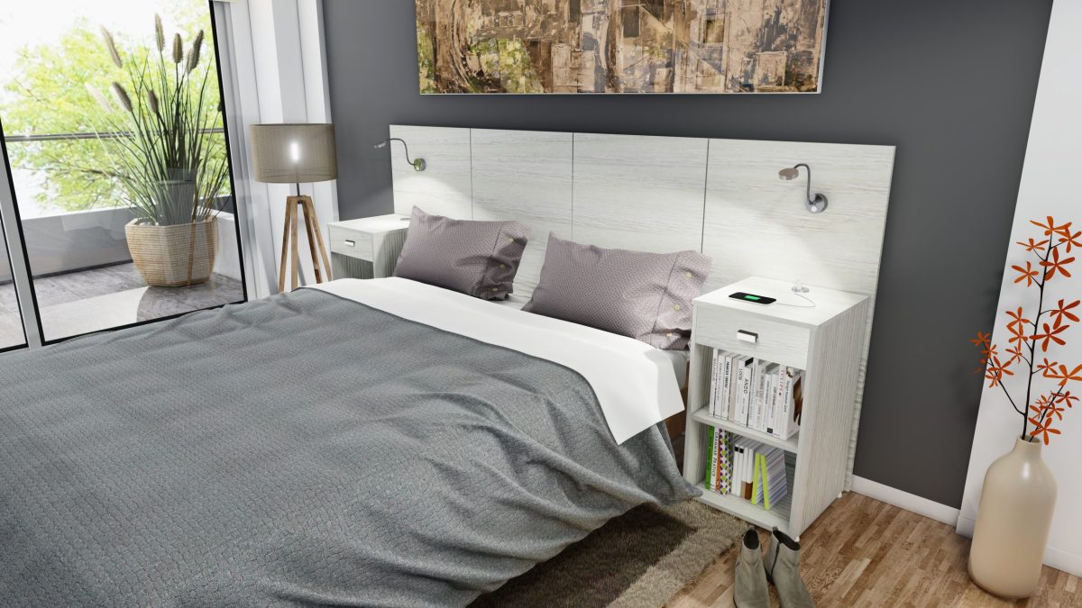 3.300 Cabecera Matrimonial con 2 Mesas de Luz – Línea Iluminate – Gris