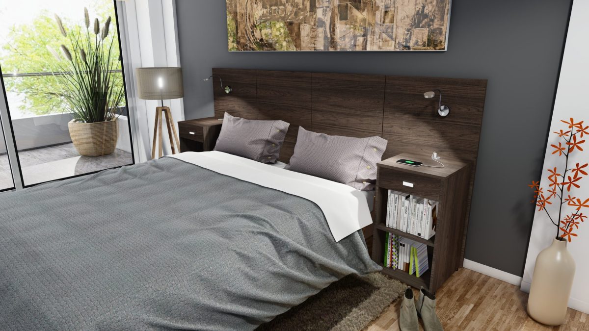 3.300 Cabecera Matrimonial con 2 Mesas de Luz – Línea Iluminate – Noce Mumbai