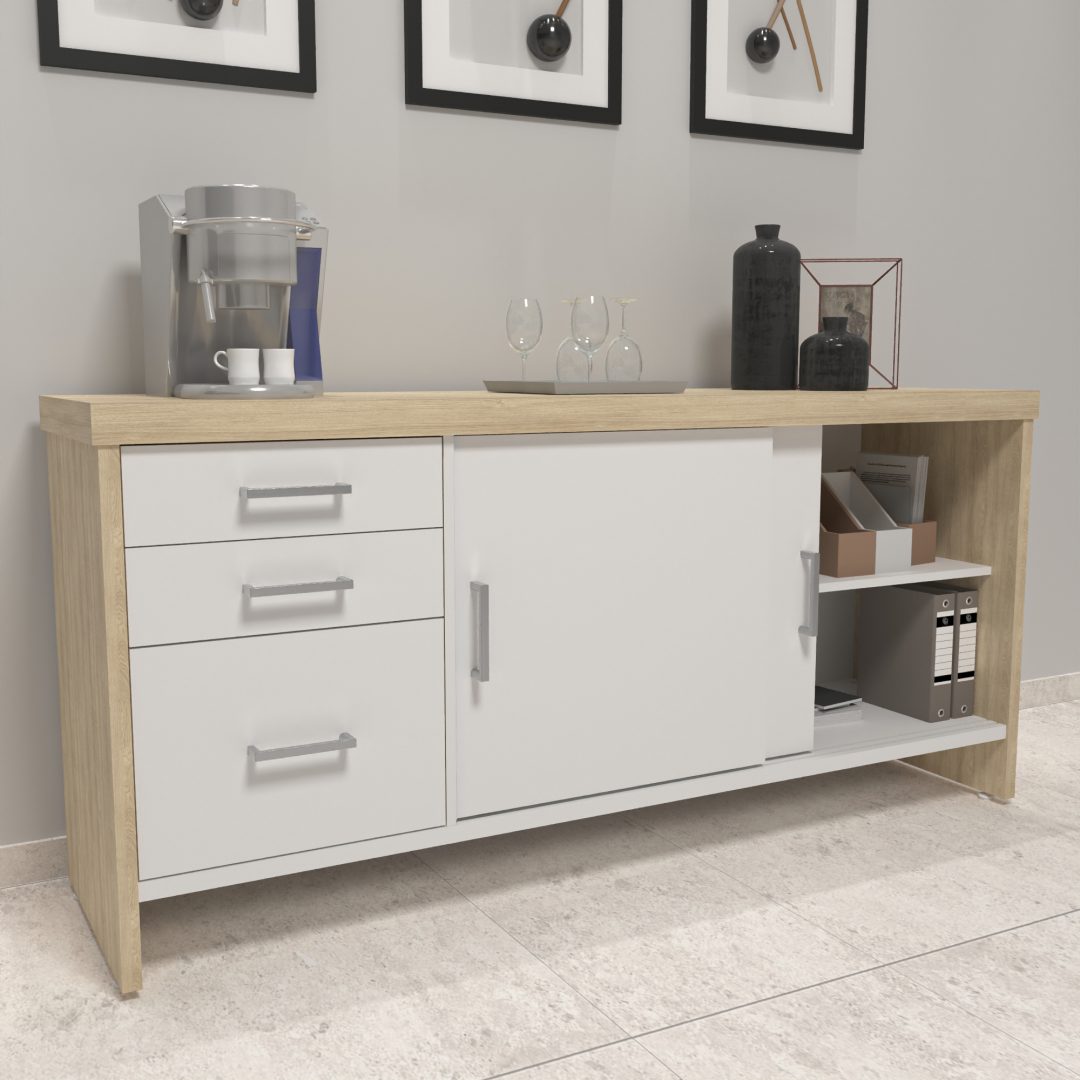 17.020 Gabinete Con Cajones – Roble – Blanco