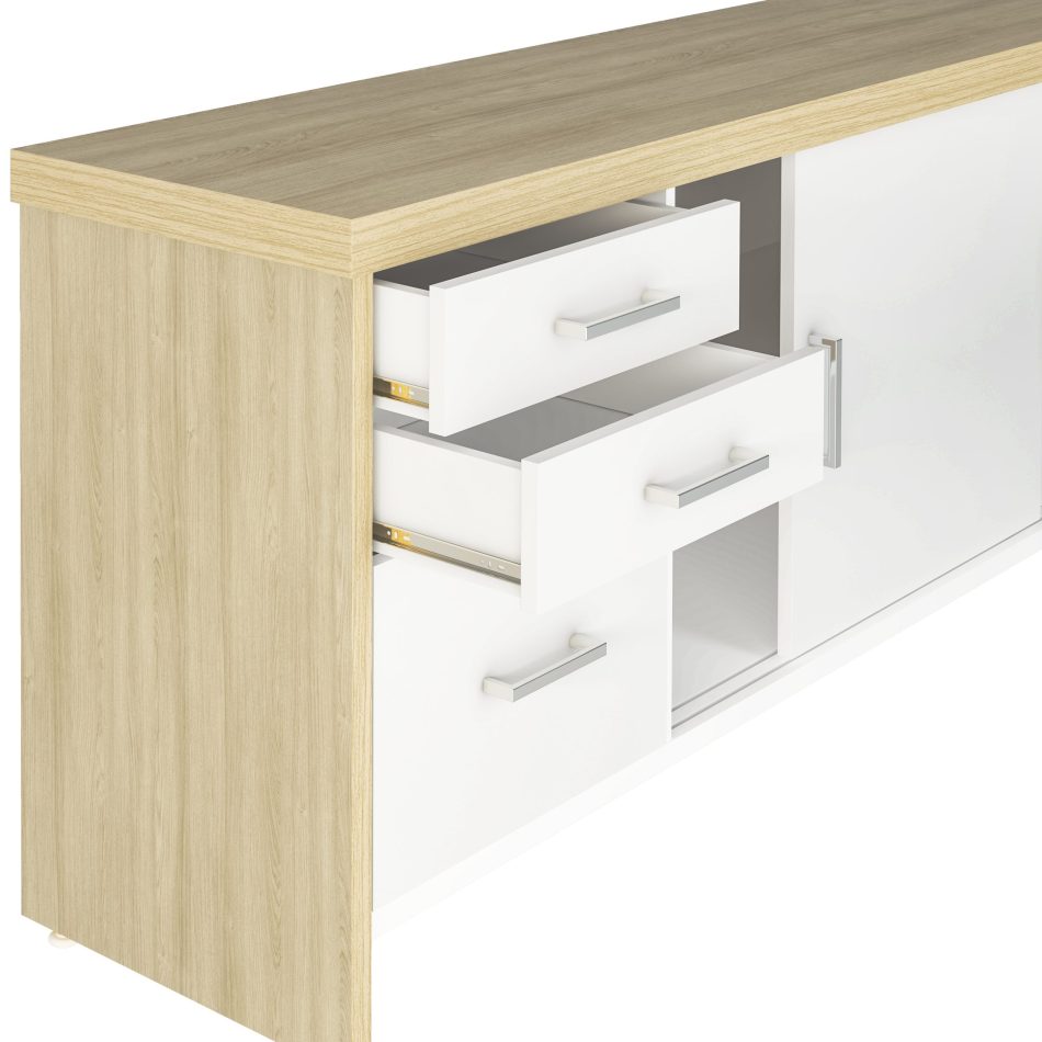 17.020 Gabinete Con Cajones – Roble – Blanco