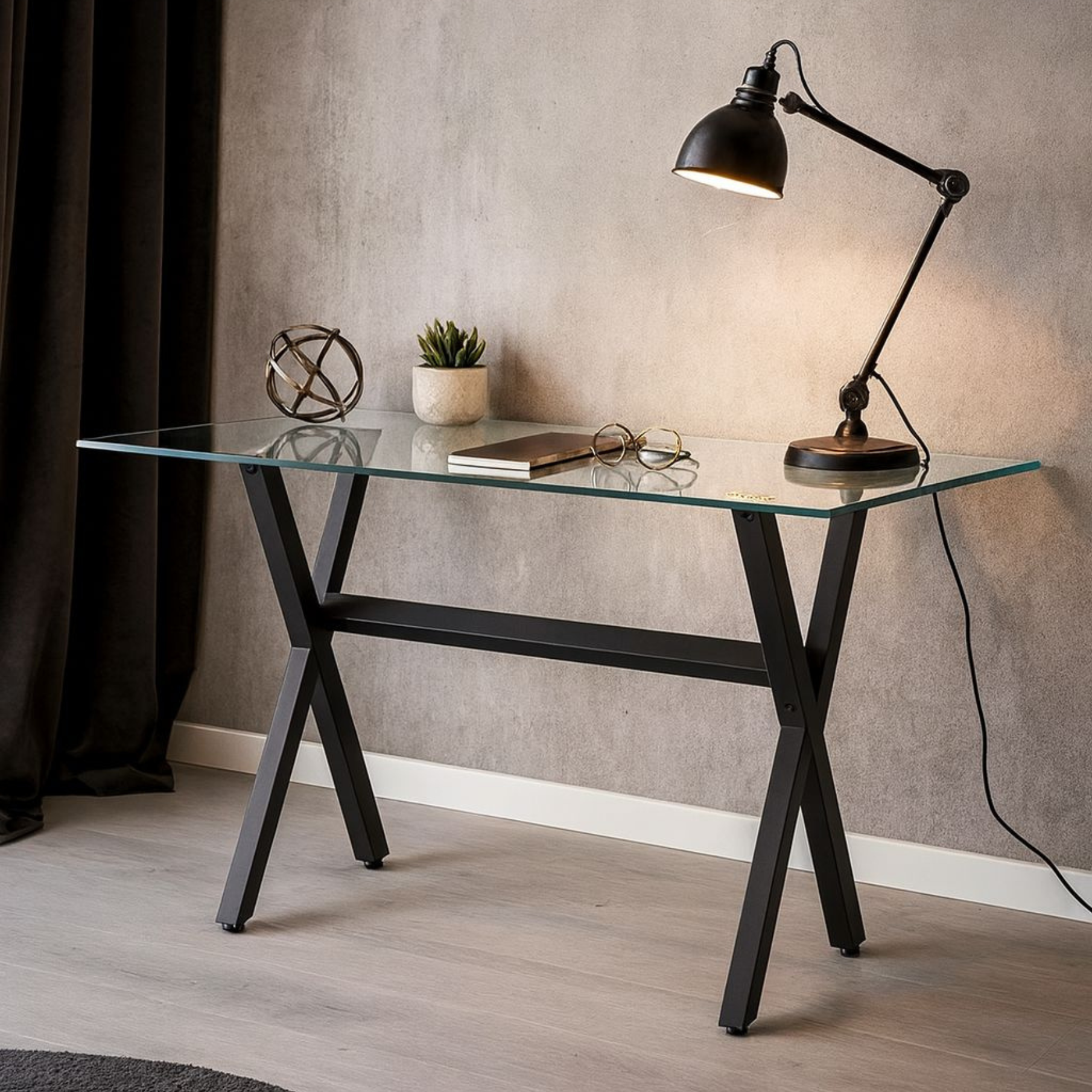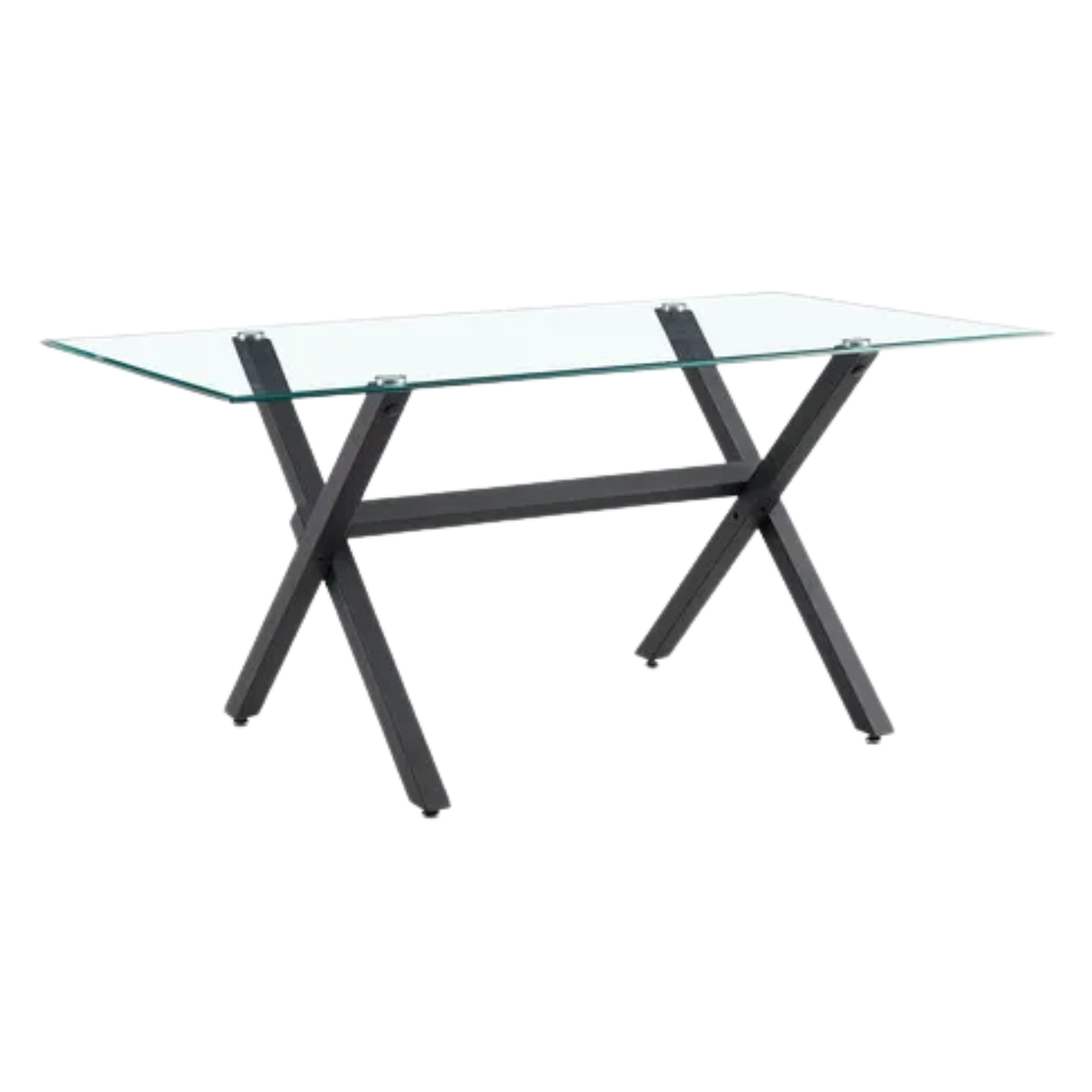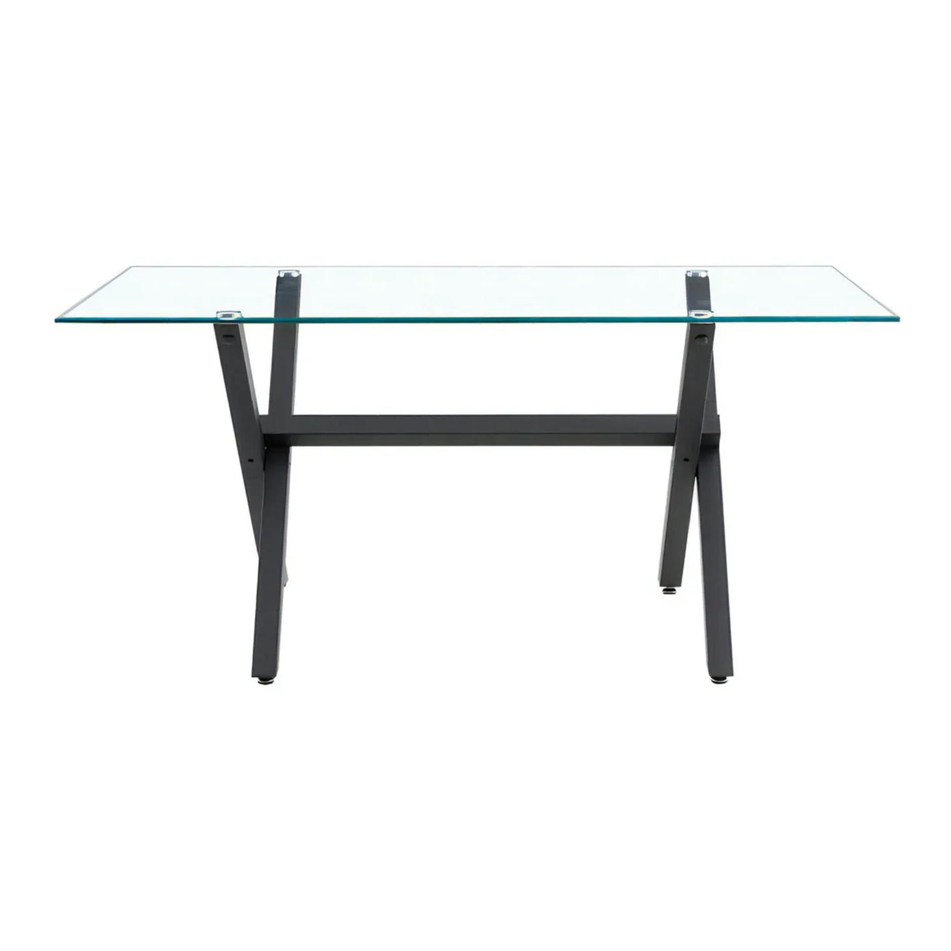 7.847 Mesa Vidrio 1.60 x 0.90m. Patas Cruz Metal – Transparente – Negro